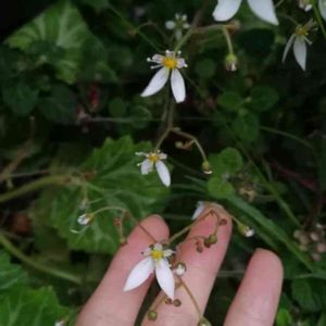 今日のお花 「雪の下」 可愛いお花が咲きますね🍀 葉が赤く無い緑色の種類もありますね🍀 花も赤い模様が入らないのは 「ハルユキノシタ」とか 天ぷらにすると味はあまり無く、食感がモチモチするらしいです。 今度やってみます🍀