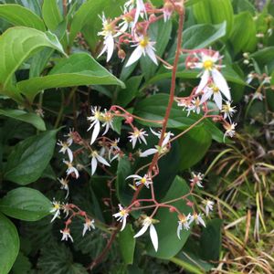 雪の下 木陰が心地いいのでしょう。芍薬の下で葉を広げ花を咲かせています🌸😊