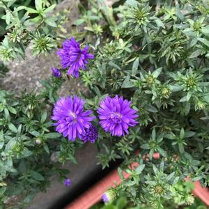 箱根のホテルの中庭 八重咲きのクジャクアスター 学名:Aster cv. 別名:宿根アスター、クジャクソウ 科名:キク科 属名:シオン属(アスター属) これもよく花材で使いますが、ここのはお花が大きくて立派です💜 *️⃣よくクジャクソウと呼びますが、マンジュギク(マリーゴールド)、ハルシャギク、クジャクシダの別名でもあります。