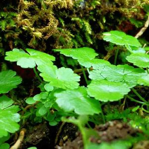 庭の片隅でチドメグサが小さな可愛い葉を広げていました(^^)