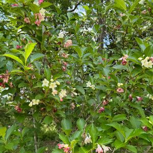 ハコネウツギ・・・ 花が白→ピンク→赤と色変わり🌸 🤍🩷❤️ キタテハ🦋が吸蜜中😋 色違いの花が混ざって咲いていて可愛い😍