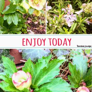 ⚡️北側の花壇⚡️ ローズマリーの紫色の小さな花。 クリスマスローズ、二種も開花。 ピンクの縁取りはアプリコットだったかなぁ〜〜。 淡い黄色は名無しのクリローです。 北側なのでちょっとだけ開花が遅いですね。