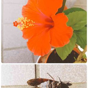 こんばんは✨ 赤いハイビスカス咲きました🌺 セミが仰向けでバタバタしていました😅暑さに負けたのかな?