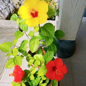 こんばんは😃🌃 今日も暑かったですね。 ハイビスカス、二色同時に咲きました😊