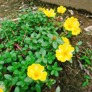 こんばんは😃🌃 ポーチュラカ、黄色に白が入って可愛いお花🌸