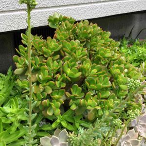 💕✨主役はだあれ〜〜?✨💕 ヒュ〜〜と伸びてる名無しの多肉さん。 お花が咲いてるのかなぁ〜〜。 お判りの方、教えて下さい。 (後方の金の成る木では有りません)