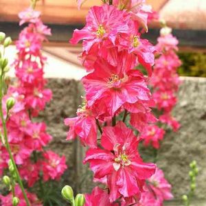 先日 投稿した白色のデルフィニウムのお隣にあるピンク色のデルフィニウムも苗から育てて花が咲きました✨