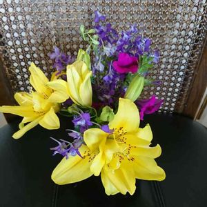 ルーフバルコニーの柵を越えあっち向いてホイの方向で咲いていました。もったいないので花瓶で鑑賞‼️🎶 あまりセンスがありませんね‼️💕💕