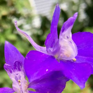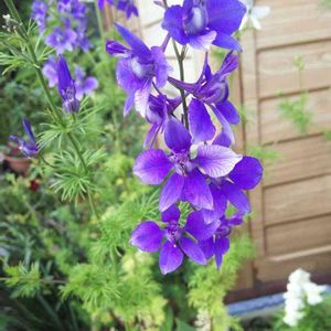 白とピンクのデルフィニウムと一緒に植えたムラサキのデルフィニウムも花が咲きはじめました💜