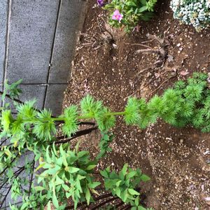Elmarくんと朝散歩途中(╹◡╹) 千鳥草ですが、千鳥と言うより怪獣? ラドン?