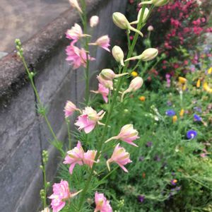 ピンクの千鳥草がさきました。種から育てた可愛いい子🎵満開までは、もう少し🌸