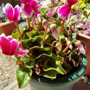 シクラメン 毎年咲きます。 花がガーデンシクラメンみたいにちいさくなったのは、長い間、植え替えをしていないからかなあ?