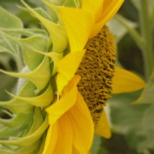 変わった色のヒマワリだなぁ って! はむっ!! なぜヒマワリの葉っぱを食べようとするの? 美味しいの?