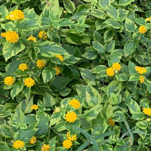 斑入りのキバナランタナさんが*** てんこ盛りに咲いてます🌿💛🌿 元気いっぱぁ➰い(*ノ▽ノ)