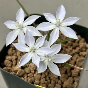 ラペイロージア モンタナ 頂き物の苗が咲きました🤩 水色と白があるみたいですが綺麗な白色でした 3枚目取り撒きした秋咲きにちび球根が👀 このサイズでもう休眠にはいるようです