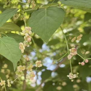 吊花🌳 ツリバナ 道沿いマンション植栽 木の花‥小さなピンクが風になびいてかわいい😍