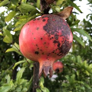 柘榴(ざくろ) 裏庭のざくろの木 手の届かない枝に、ざくろTwinsが、、 これってどんなタイミングで収穫したらいいんだろう??
