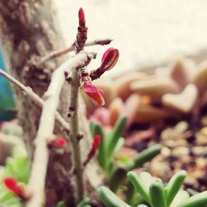 芽吹きの季節...❇️ 生きてるかどうか、心配しながら水やりしてたザクロの木が やっと目を覚ましたようです🌳 多肉ばっかり育ててるから、しょっちゅう水やり忘れたり 肥料なんかバラッと適当に撒いとるけど 頑張って育ってくれてます😍