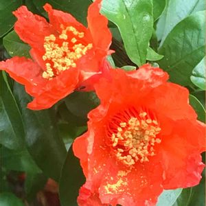 『ザクロの花❤️』 会社のザクロの花 ようやく写真に 撮れました🤳 春先に枝を🌿切ってしまい 花は見れないと、落ち込んでましたが 綺麗なザクロの花❤️を 見れて嬉しかったでした‼️ 八重咲きザクロも素敵ですが 普通のザクロも素敵ですね❤️