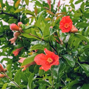 7月1日 今日のお花 🏵️🌿 ザクロ 🌿🏵️ 果樹として知られるが、朱赤の花も美しいです。 枝には鋭い棘が多い。実は秋に熟し生食される。果実が小さいヒメザクロや、八重咲きで果実ができない重弁のハナザクロもある。 花期:6〜7月