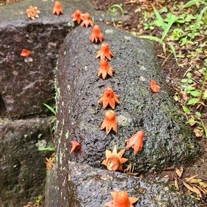 こんにちは♪☺ 🏷️「真っ赤な火曜日」 参加させて頂きます。❤ 1️⃣赤い行列・タコ散歩🐙💨 濡れた石は滑ります。吸盤かないんだから気を付けて❣️😅 『ザクロ(柘榴)』 2️⃣ザクロの花と蕾❤🔴🌿 3️⃣オレンジ色の行列 『ツノマタタケ(角又茸)』 食用になる茸だそうですが、細かいので採取するのが大変で現在ではほとんど食べられていないそうです。💛💛✨ ☆2025/6/10 撮影📱 ☆江戸川区南葛西