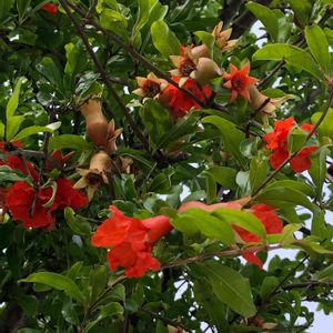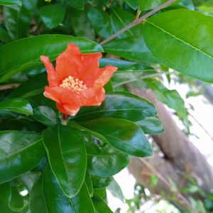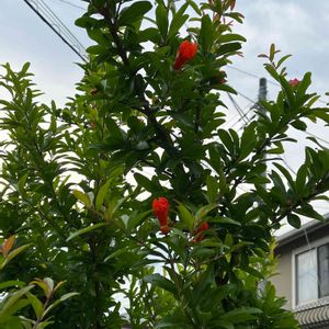 ザクロ 誰が植えた? 🐦さんが運んだ? 手入れも何もしてませんが毎年花が咲いて実をつけます。 🏷今日のお花 見てくださってありがとうございます (❀ᴗ͈ˬᴗ͈)⁾⁾ペコリ