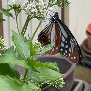 『今日の花』 『ウツギ』の花 アサギマダラ🦋♀メス 生まれたての綺麗な蝶🦋 ウツギの花蜜を吸って 旅してくださいね💕