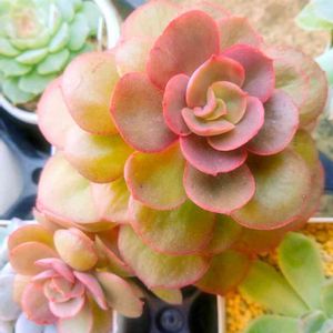 チョット、エケでは小振りなスヨンなる株. 初めての冬越えで,様子を見たら,葉を密に窄めて,紅い花のような姿に.冬場のエケの元気な姿の典型, 小振りだから,結構冬にも耐えられそう. このサイズなら,狭いウチに丁度良さそう.