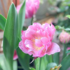八重咲きチューリップのアップスター🌷 花言葉は「天真爛漫」 ふわっと優しい感じに咲いてます💕