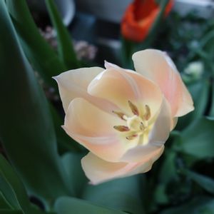 おはようございます(#^_^#) 5つ目のチューリップは、コーラルピンク🌷 一重でほんわか可愛いです✨️