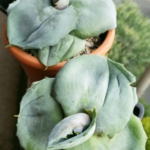 パビリオ兄弟。冬に枯れ込んだ部分が展開してキレイになった。 メリクロン株なんだろうね。別々に購入したのにあまり個体差を感じないのは。 アガベらしくないフォルムだけど、そこが好き。