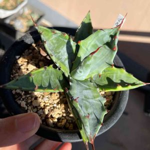 ビニール越しでボヤけておりますが… アガベ マルモラータ あまり変化がなかったのですがいつの間にか大きなってました。 元々は萎性種のパピリオが欲しくて育て始め出なかったので放置気味でしたが、、 好きな感じになりました。 葉が肉厚で大変宜しい👍