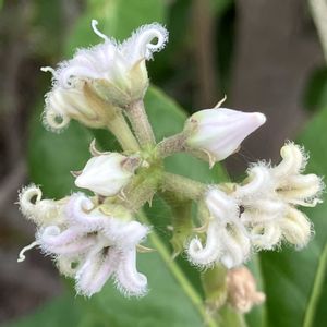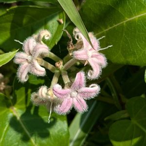 このお花は ガガイモ(蘿藦)です。 淡紫色または白い星型で反り返った花びらの内側に細かい毛が密集しているのが特徴です。 語源には諸説あるようですが 古名は カガミとかカガミグサと呼ばれていたようで イモと言うのは 根ではなく実によるもののようです…。 種子や葉は薬用に 若い芽は食用にされて来たのだとか…。🤗✨ 日本 朝鮮半島 中国原産。 キョウチクトウ科ガガイモ属の多年草