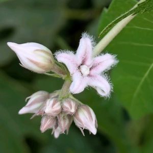 ガガイモの花が沢山咲いていました、今年も大きな実がなってキラキラと輝く旅立ちが見れるでしょうか♡🌿 ガガイモの花は日当たりの良いやや乾いた原野に生えるツル性の多年草です。 花冠は1cm位で5裂し、長い毛が密生しています。 中心部には雌蕊と雄蕊が合着したずい柱があり、付属体が長く花冠から突き出ています。 副花冠は環状でずい柱の基部を取り巻いています。 (花冠から突き出している長いひょろっとしたのは花柱とも言われています) 袋果は長さ10cm位で表面にはイボ状の突起があります。 5️⃣ ガガイモの冠毛の旅立ち キョウチクトウ科ガガイモ属