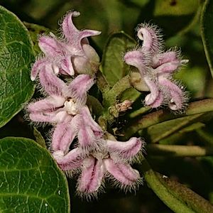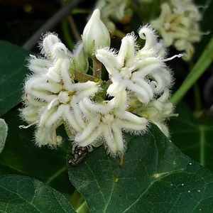 ☆ガガイモ☆ センダンの木に巻き付いて咲いていました 初めて見るお花ですがGSの皆さんの投稿で学習済み モケモケでパープルがかった白花 カワイイ😍