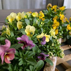 ビオラ2種とクローバー、スィートアリッサムの寄植え、最近モリモリです💓こっそりポリゴナムも入っていますが何処にいるの?って感じです。 徒長気味ですが、カットせずにこのままにしておきます。今年は我慢できないほど乱れた時が、夏の花への植替え時期と考えています。