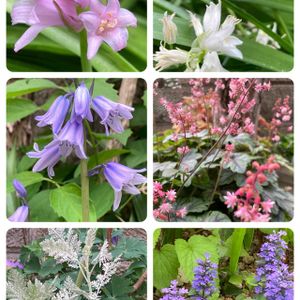 ☆庭のお花達☆ ❶*シラーカンパニュラータ 3色 ピンク、シロ、ムラサキ共 お花より葉っぱぎっしりに 増えてます! *ヒューケレラ・タスペトリーの お花が沢山咲いてきました *アジュガ(ジユウニヒトエ) *シルバーレース 購入時の3倍位の大きさに なりました〜 ❷*ネモフィラ、一昨年の溢れ種で 2〜3カ所に出てきました! *ガーベラ(原種) 雨の前に撮った写真 鮮やかな赤色がきれいで 形もシンプルで好き😊 ❸*キエビネ 6個のお花が 全部開花し、きれいです〜