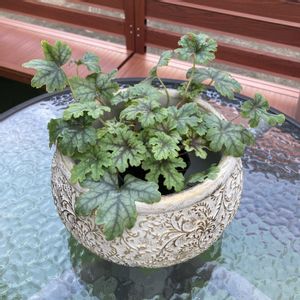 まだ鉢にポット苗を入れただけですが、ヒューケレラ タペストリーが綺麗です😌 庭でお茶を飲んだり、少し心が安らぎます☕️