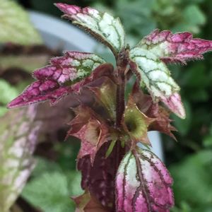 黄色いお花を付けるラミウムの葉っぱ 紫色に紅葉してる〜💜