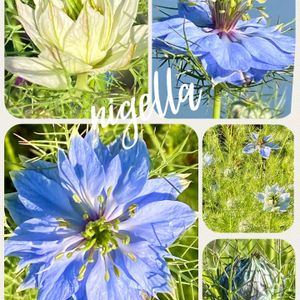 今日の庭の様子 ①ニゲラ ②ブルースター ③カルフォルニアポピー ④オルレア ⑤カワラナデシコ