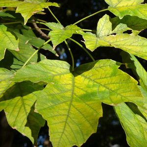大きな葉のカジカエデはオニモミジの別名を持ち、環境によって様々な紅葉の色を見せるそうです。