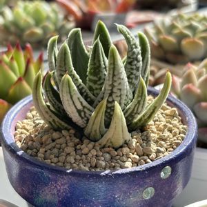おはようございます😊 ハオルチア属 皇帝🪴 雪が積もっているようなハオルチアです✨硬葉ハオルチアでもやや大きめの品種ですが、いまのところ4号ロングで足りています🪴 春には植え替えないと行けないかもしれませんけどね😅