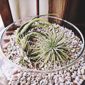 初ソーキング中🚿近所のダイソーのエアプランツは干からびていてとても購入する気にはなれなかったけれど、仕事帰りに会社の近くの大型店舗に寄ったらまともな子を発見✨ 初心者だからこれ以上増やすのは危険だと思いつつも手のかからないエアプランツならとお持ち帰りしました💕 名前を見ずに紙捨てちゃったな😅この子の名前を教えて下さい😢