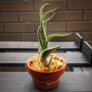 ちょっと前に購入の100均チランジアなのですが、名前がわかりません。カプトメデューサかと思いきや、葉の形がやや平べったくて、違う種類のような気がしてなりません。もし、お分かりの方はどうぞお気軽にご教授頂けたら幸いです。