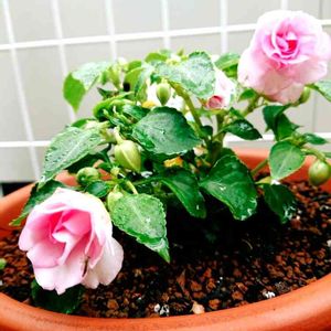 バラ咲きインパチェンス カリフォルニアローズ フィエスタグランデ まだ植えたばかりで小さいです❇️ Photo by daughter🌼