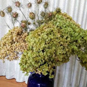 こんにちわ☺️ 今日は蒸し暑い、うっとうしいお天気です。 知り合いから、アナベルのドライをわけて頂きました😊 綺麗なライムグリーンになったアナベル💚💚 とても嬉しいです😄