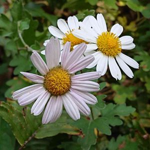 イヨアブラギク 伊予油菊 11/26 タイキンギク 堆金菊 サツマノ 薩摩野菊 シオギク 潮菊 おはようございます 牧野植物園は今は野菊の共演です💛💛🤍💛 イヨアブラギクはシマカンギクの変種 タイキンギクは大金菊では無く堆金菊、堆く(うずたかく)咲くという事です💛 サツマギクは鹿児島県東シナ海など海岸近くに咲く シオギクは日本固有種、高知の物部川から東や室戸岬、徳島県の海岸に分布 近年元々高知県の物部川から西部に自生するノジギクとの交配が進んでいる シオギクは私も大人になり久しぶりに見ると白い花弁や少しピンク色の花弁が出てきてまして大ショックでした😰 もうシオギクは見られないのだろうか😰😰💛