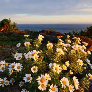 南さつま市笠沙、高崎山展望所❗ 朝焼け時の、サツマノギクです🎵