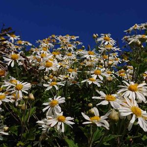 11月もあと僅か 散歩中にふと見慣れぬ白い花、茎や葉に銀白色の毛が密生するサツマノギク(薩摩野菊)でしょうか。 鹿児島や熊本の海岸に良く自生しているとか