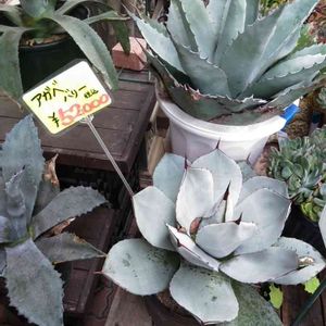 最高値!!見つけた。 今日は普段行かない地へ。 旦那と子供がJ2サッカー観戦の送り迎えの間、2時間。 園芸店をグーグルマップでググって、3軒ほどハシゴ。 あまり収穫はなかったけど、凄いの発見! 直径30㌢オーバーのアガベさん。52000円。 0が一個多いのかと思ったけど、あってるのね。 私が見たことのある多肉の中での最高値だ!!